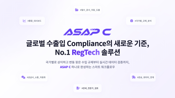 글로벌 특수물류·무역 RegTech 기업 에이셉익스프레스(대표 안용진)는 AI 기반 무역 컴플라이언스 서비스 'ASAP C'(Compliance AI)를 출시했다고 22일 밝혔다.