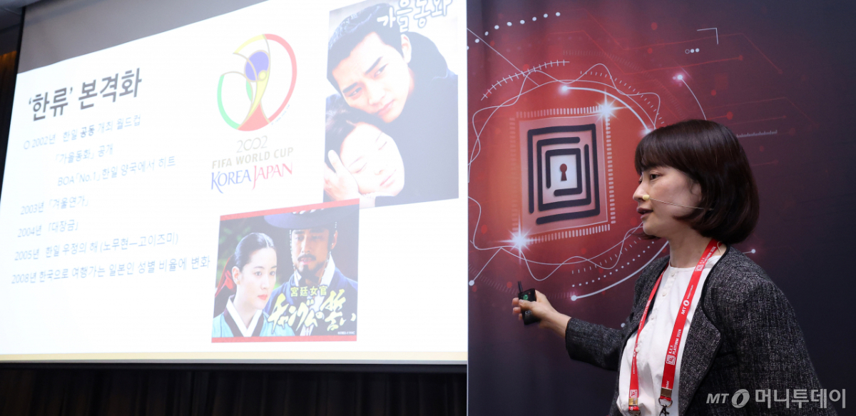 히라바루 나오코 서일본신문사 기자가 23일 영등포구 콘래드 서울에서 머니투데이 주최로 진행된 '2026 키플랫폼' 특별세션3 '한일, 생존의 연대: 공동의 전략'에서 '한국 이미지의 형성과 변화-일본 사회의 인식을 읽다'에 대해 발표하고 있다. 독자들의 PICK! 허니문 베이비 '출생의 비밀'...결혼 직전 전남친 만난 아내 소유, 임영웅과 '제주도 열애설' 전말 공개 '음주 뺑소니' 김호중, 옥중 50억 돈방석?…지분가치 '반전' 남편 방에 정력제..."아들아, 인생 즐겨" 불륜 응원한 시모
