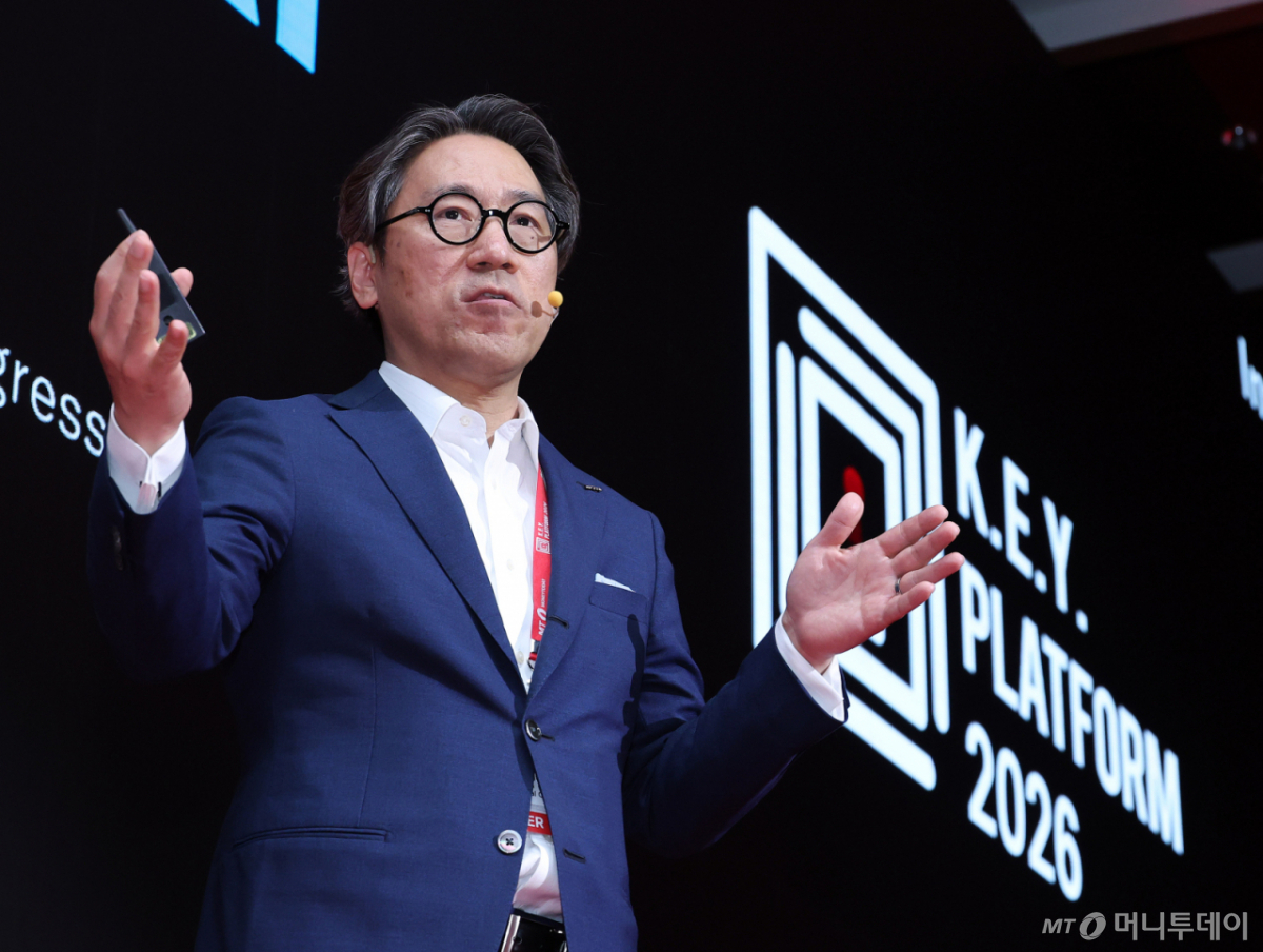 백현준 롯데홀딩스 헬스케어&바이오파마 CVC(기업형 벤처캐피탈) 매니징 파트너는 24일 서울 여의도 콘래드 서울 호텔에서 열린 머니투데이 글로벌 콘퍼런스 '2026 키플랫폼'(K.E.Y. PLATFORM 2026) 총회2에서 'AI(인공지능)와 바이오 투자 전략'에 대해 발표하며 이같이 말했다.