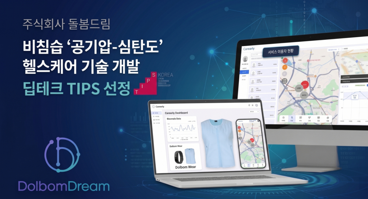 비침습식 생체신호 모니터링 기술을 선도하는 스마트 헬스케어 스타트업 (주)돌봄드림(대표 김지훈)이 중소벤처기업부의 초격차 기술 창업 지원 프로그램인 '2026년 딥테크 팁스(TIPS)'에 최종 선정됐다고 27일 밝혔다.
