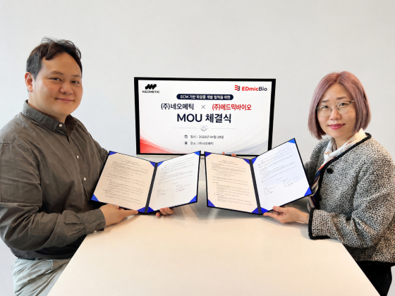 바이오 프린팅 전문기업 에드믹바이오(대표 하동헌)가 네오메틱(대표 최미리)과 세포외기질(ECM·Extracellular Matrix) 기반 화장품 공동 개발을 위한 업무협약(MOU)을 체결했다고 28일 밝혔다.