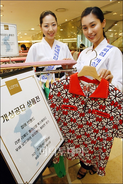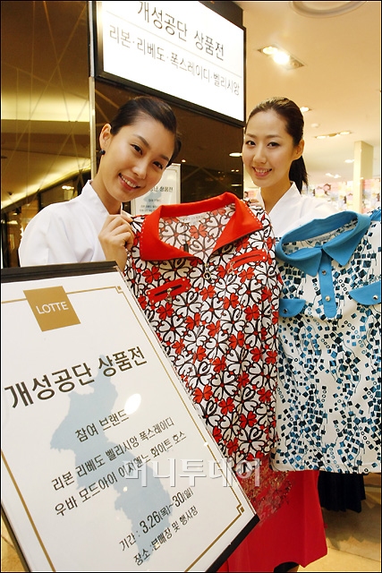 롯데백화점은 3월 27일부터 4월 3일까지 본점을 비롯한 잠실, 영등포, 청량리, 강남, 분당, 부산 7개점에서 북한 개석공단에서 제조한 상품들을 한 자리에서 만날 수 있는 모음전을 진행한다. 리본, 리베도, 로잔, 우바 등 총 9개 디자이너 부틱 브랜드가 개성공단에 직접 발주하여 제조한 봄 신상품으로 일반 신상품에 비해 30~50% 저렴하게 구입할 수 있는 기회를 제공한다.