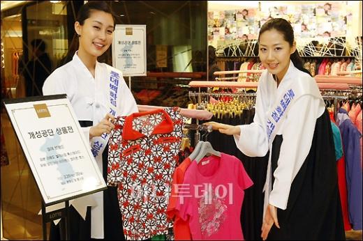 롯데백화점(대표이사 이철우)이 27일 오전 서울 중구 소공동 본점에서 북한 개성공단에서 제조한 의류들을 선보이고 있다.