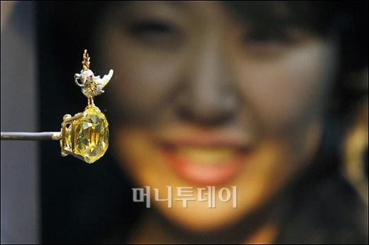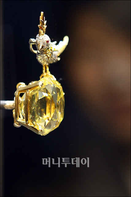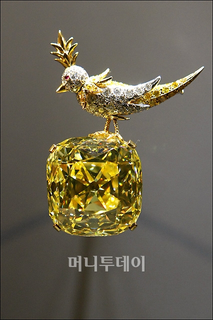 '티파니 보석전'(The Jewels of TIFFANY 1827-2007)을 하루 앞둔 27일 오후 서울 예술의전당 한가람디자인미술관에서 현존하는 옐로 다이아몬드 중 가장 큰 '바위 위에 앉은 새(Bird on a Rock)가 공개됐다.