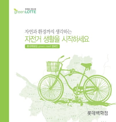롯데백화점은 26일부터 시작된 여름 프리미엄 세일에 맞춰 환경 캠페인의 일환으로 자전거 활성화를 위해 자전거 생활 가이드북을 제작, 전국 25개 전 점포를 통해 배포한다고 28일 밝혔다.