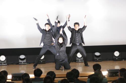 갑자기 무대에 조명이 꺼졌고 무대 위로 '건장한' 남자 네 명이 모습을 드러냈다. 요즘 최고 인기인 '짐승돌' 2PM의 '하트비트' 멜로디가 흘러나왔다. 순간 객석 곳곳에서 환호가 터져 나왔다. 무대 조명도 화려했다.