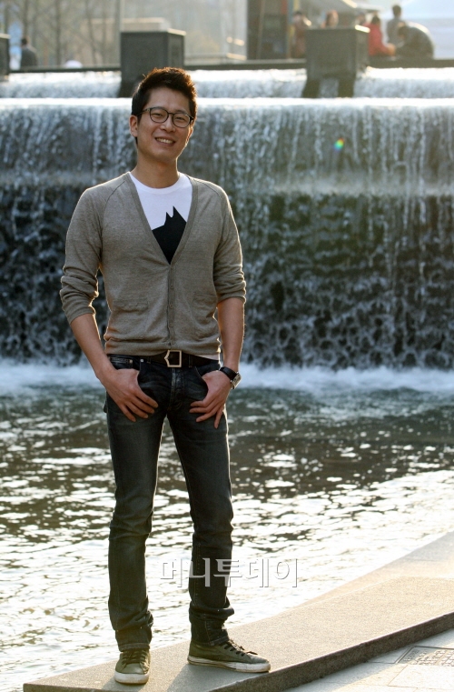 '봄 총각' 컨셉트의 캐주얼룩으로는 슬림한 '디올옴므' 청바지에 같은 브랜드 티셔츠, 브라운계열의 '띠어리' 가디건을 선보였다. 날카로운 인상을 부드럽게 만들어주는 블랙 뿔테는 '빅터앤롤프' 제품이다.