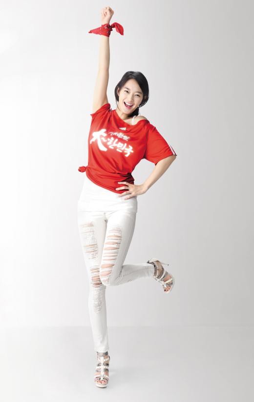 레드패션의 하이라이트다. 좀 더 이색적인 느낌을 가미한 미니원피스. 섹시한 느낌을 주며 수많은 응원 부대 속에서 분명 군계일학이 될 수 있는 톡톡 튀는 패션제품.