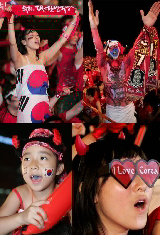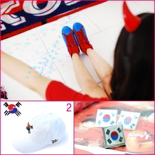 올 6월이면 어김없이 등장할 레드 티셔츠 물결 속에서 좀더 특별한 응원패션을 연출해 보는 것은 어떨까? 티셔츠, 모자, 신발, 귀걸이 등 이번 한국경기 응원을 위한 다양한 패션용품을 알아보자.