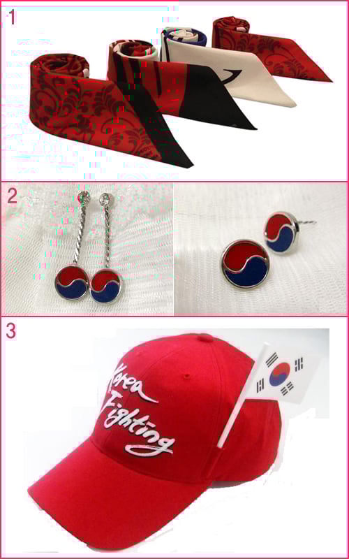 태극 무늬를 활용한 액세서리 제품은 16강을 기원하는 국민들의 사랑을 담은 패션으로 더욱 돋보인다. 태극 무늬를 심플하게 디자인한 핸드메이드 액세서리 제품들은 고급스러운 느낌을 준다. 평상시에도 단아한 느낌으로 연출할 수 있어 활용도가 높다.