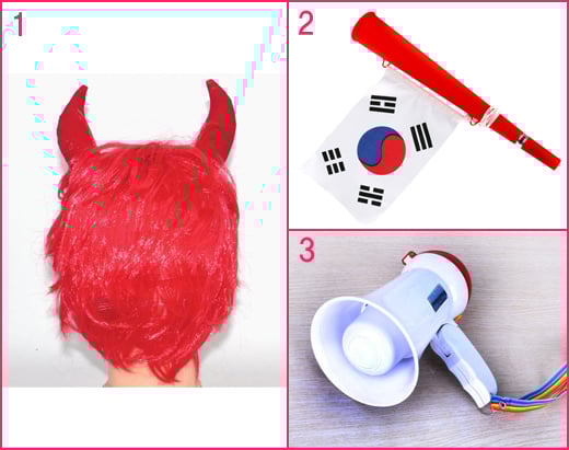 가발을 이용해 머리까지 붉게 물들이면 재미와 함께 응원열기를 더할 수 있다. 붉은 악마를 상징하는 뿔이 달려있어 위트 있다.