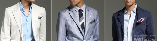 행커치프는 그 디자인과 접는 모양에 따라 여러 분류가 있는데, 사진 왼쪽과 같이 구겨 넣은 듯한 느낌으로 접는 것은 ‘퍼프트 폴드’ 라는 방법으로 중앙부분을 손으로 끌어올려 연출한다. 가운데의 ‘트라이앵글 폴드’는 깔끔한 스타일을 연출하기 쉬운 법, 오른쪽 돛단배 모양처럼 연출한 ‘멀티 포인티드 폴드’는 냅킨 접는 방식과 동일한 방법으로 부드럽고 세련된 모습을 연출해준다.