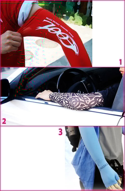 자외선차단제를 매번 발라줘야 하는 불편함을 해소한 제품. 다른 토시와는 달리 손등까지 덮는 긴 사이즈로 자외선 차단에 효과적이다. 운동시 편리하다.