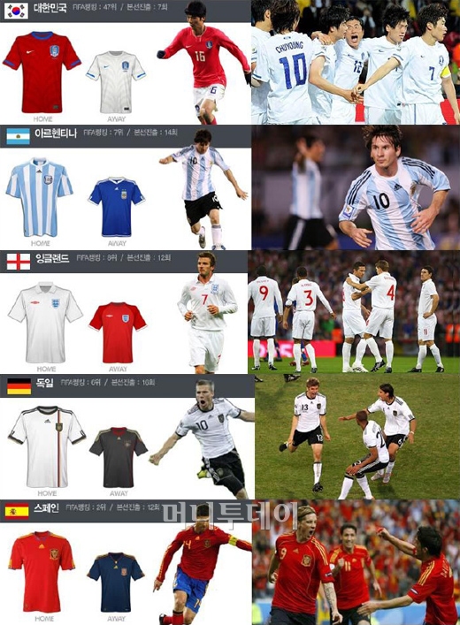 유니폼 대전, 대한민국 유니폼이 1위..2,3위는 아르헨티나, 잉글랜드