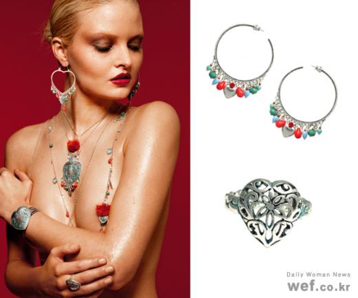 메탈, 자개, 글라스 비즈로 표현한 다양한 문양과 조각이 특징인 집시걸 주얼리. 사랑을 노래하는 자유로운 영혼, 집시 걸을 연상케 한다. 비비드한 컬러와 시크한 패턴이 어우러진 주얼리가 함께 한다면 에스닉 코디는 더욱 강렬하고 풍성하게 완성될 것이다.