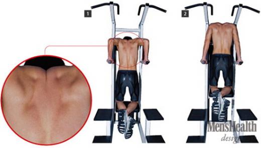 2 몸을 앞으로 숙일수록 삼두근보다 가슴에 더 많은 운동이 된다. 천천히 시작 자세로 돌아간다. 이때도 역시 팔꿈치를 곧게 펴지 않도록 주의하라.