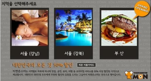 음식점, 공연, 마사지샵 등 각종 업소에서 50% 이상 할인받을 수 있는 쿠폰을 판매하는 티켓몬스터는 사이트를 오픈한지 석 달 만에 하루 매출이 1억원을 돌파했다. 현재 스마트폰에서 바로 접속할 수 있는 애플리케이션 개발을 위해 삼성전자와 업무 제휴까지 체결한 상태다.