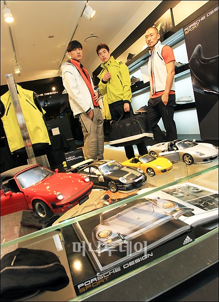 아디다스가 27일 오전 서울 중구 신세계 본점에서 세계 최초 포르쉐 디자인 스포츠 단독 매장 오픈 행사를 진행하고 있다.