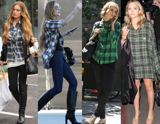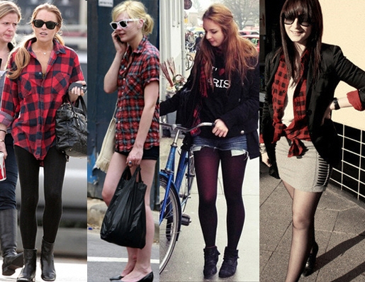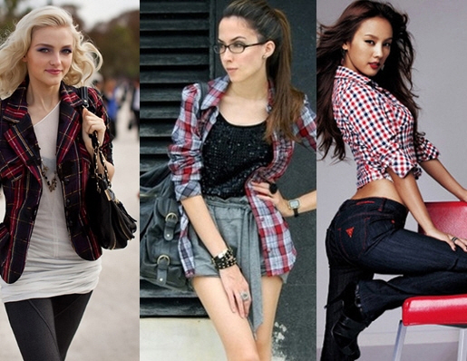 가을에 입는 체크셔츠하면 가장 많이 떠올리는 색상이 레드계열이다. (왼쪽부터) 상의는 루즈하고 박시하게 코디하고 하의는 스타킹이나 레깅스로 연출하면 스타일 을 한껏 살릴 수 있다. 체크 패턴의 자켓과 미니스커트, 박시한 체크셔츠와 스키니, 루즈핏의 셔츠에 청스커트 등으로 캐쥬얼하게 연출할 수 있겠다.
