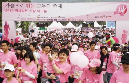 이번 대회는 1만 여 명이 참가해 핑크색 티셔츠를 입고 여의도 공원 일대를 핑크색으로 물들이는 진풍경을 연출할 것으로 기대를 모으고 있다.