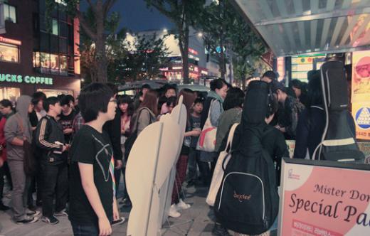 입장을 기다르는 많은 사람들. 공연금액은 오천원! 공연수익금은 전액 사회에 기부! 쌈사페는 사전 예매와 현장구매가 가능했다! 입장까지 대기시간이 있기 때문에 미리 예매를 하는게 좋다.
