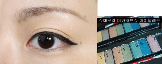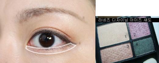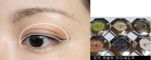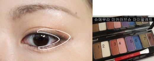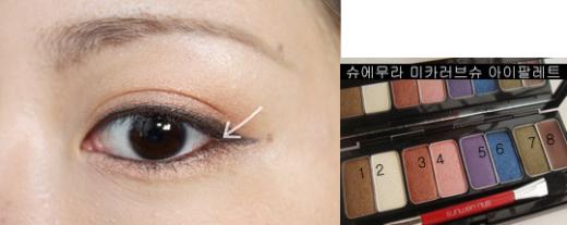 눈 밑에는 브라운 말고3번 살구색 섀도우를 바르고