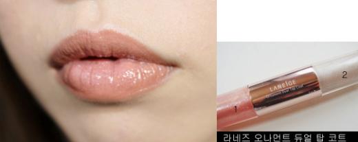 벗뜨 러블리한 브라운이니까 1번 핑크 립글로스를 덧발라 약간 살구색처럼 만들어 주세요. 살구색 립스틱이나 글로스 있음 그것만 발라도 되용, 스아실 집에 살구색 립스틱이 엄서서 섞어 발랐시요.