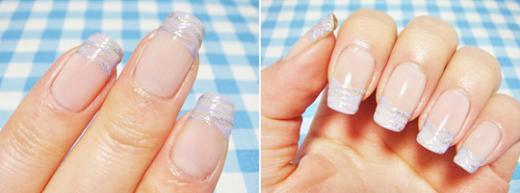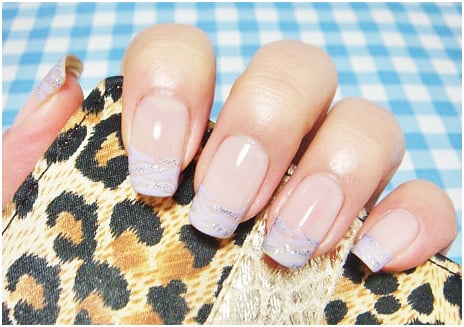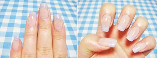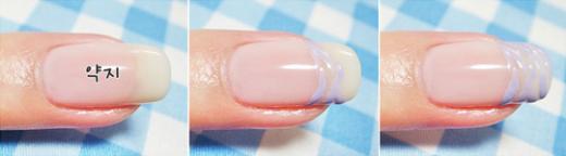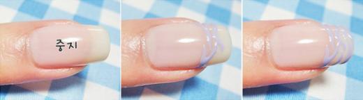 다섯 손가락 모두 프렌치 라인에 지브라 무늬를 그려주면 요런 모습.. 우유빛 바탕에 연보라색 지브라 무늬가 차분하면서도 수수해 보이죠?ㅎ