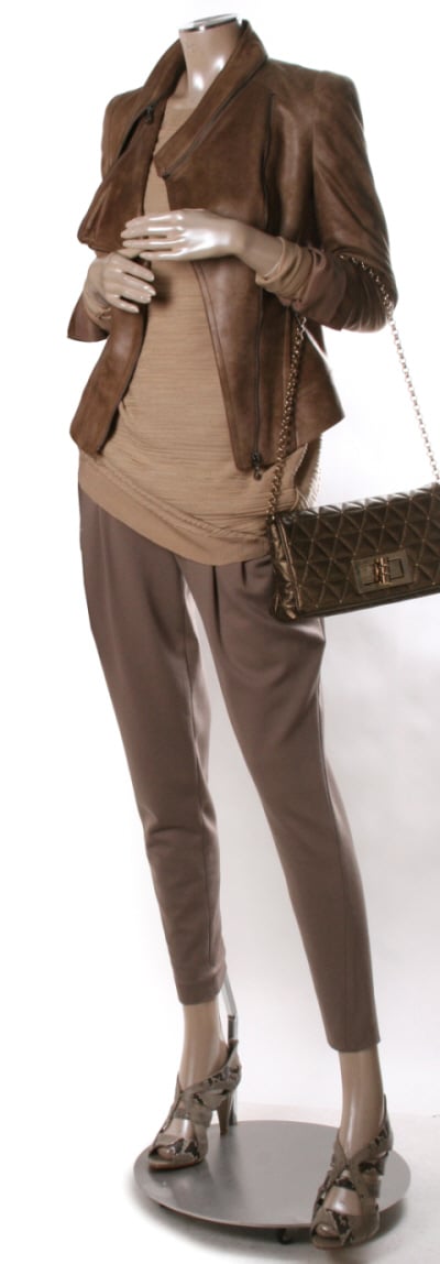 칼라부분에 지퍼 디테일로 포인트를 준 스웨이드 재킷과 루즈한 니트, 팬츠를 매치해 멋스럽고 경쾌하게 입어보자. 당당한 느낌과 커플들 사이에서 기죽지 않는 스타일을 만들 수 있다. 스웨이드 재킷은 군더더기 없는 깔끔한 디자인으로 선택해 팬츠와 멋스럽게 또는 원피스 매치해 색다른 느낌을 연출 할 수 있어 '잇' 아이템으로 손꼽힌다.