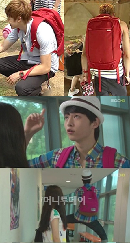 올 시즌 대표 패션컬러가 비비드 색인만큼 화려한 색을 뽐내는 백팩을 쉽게 볼 수 있다. 화려한 컬러의 백팩을 메고 싶다면 활동적인 데님팬츠와 가벼운 티셔츠를 꺼내보자. 간단한 패션이지만 화려한 백팩을 메면 금세 귀여운 매력을 가진 스타일리쉬한 남자로 거듭날 것이다. ‘우리 결혼했어요’에서 닉쿤은 자주 백팩 패션을 선보인다. 강렬한 빨간색 백팩을 메고 편안한 티셔츠와 팬츠만을 착용해 활동성을 강조했다. 드라마 ‘트리플’에서 송중기는 스포티한 후드 티셔츠에 자주색 백팩을 착용해 장난스러우면서 편안한 분위기를 연출했다. 이러한 비비드 컬러의 백팩이 얼굴빛까지 화사하게 만들어 줄 수 있으니 과감하게 시도해 보자.