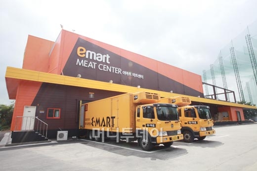 이마트가 경기도 광주 소재 물류센터를 리뉴얼해 국내 최대 규모의 축산물 전문 가공포장센터인 '미트 센터'를 11일 열었다. 총 7107㎡(2150평) 면적에 지하1층, 지상2층 규모인 미트 센터는 한우·돈육·수입육의 가공과 포장 과정을 전담하며 전국 136개 이마트 전 지점에 축산품을 공급하게 된다.