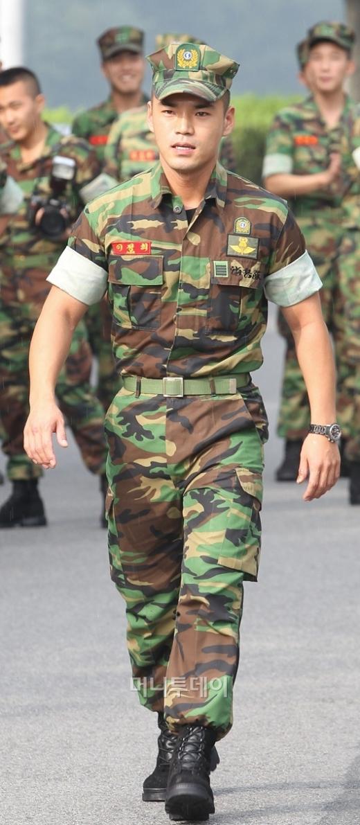 가수 이정은 지난해 8월 경기 화성 발안의 해병대사령부에서 22개월간의 군복무를 마치고 전역했다. 이씨는 2008년 10월 해병 1080기로 입대했다. 사진은 해병대 전역 당시 이정의 모습이다.