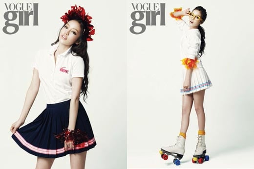 주름 스커트는 '프레피 룩'의 기본 아이템이다. 특히 네이비와 화이트 컬러 스커트는 '프레피 룩'에서 정석적인 아이템이라는 평이다. 구하라는 분홍색 로고가 포인트인 셔츠를 입고 남색 주름 스커트를 매치해 고전적인 스타일을 선보였다. 여기에 안경을 더하면 보다 지적으로 보이는 이미지를 연출할 수 있다.