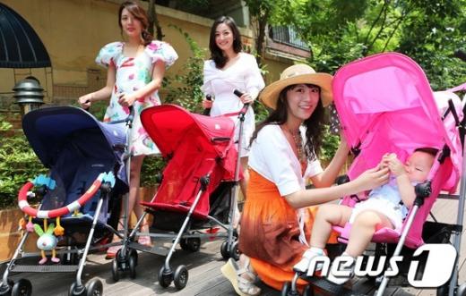 영국 프리미엄 유모차 맥클라렌의 주부 모델들이 10일 오전 서울 서초구 유아용품 전문매장 하이베베에서 통풍 기능이 뛰어난 에어 매쉬 망사시트를 장착한 2012년형 휴대용 유모차 글로브트로터를 선보이고 있다.(맥클라렌 제공)2012.6.10/뉴스1