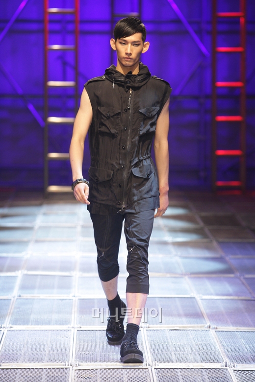 강렬한 헤비메탈 사운드에 맞춰 등장한 올 블랙 룩은 모던한 느낌과 함께 웨어러블한 스타일을 선보였다. 밀리터리 감성에 더해진 블랙 컬러와 가벼운 소재가 슬림한 핏을 완성했다.