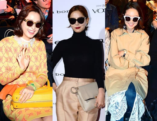 어두운 패션쇼 장이지만 스타들은 자신들의 패션을 위해 선글라스를 고집했다. 미스코리아 출신 배우 이하늬는 레트로 스타일의 원피스와 함께 원형 프레임 선글라스를 착용해 복고풍 분위기를 물씬 풍겼다. 방송인 김나영은 시크한 블랙 목폴라 니트티셔츠와 배기팬츠, 마지막으로 삼각형 프레임 선글라스를 착용해 도도한 '차도녀 스타일'을 완성했다.