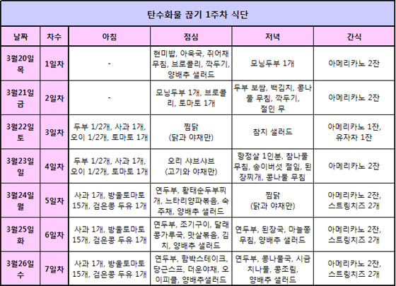 ◆탄수화물 끊기 1주차 식단