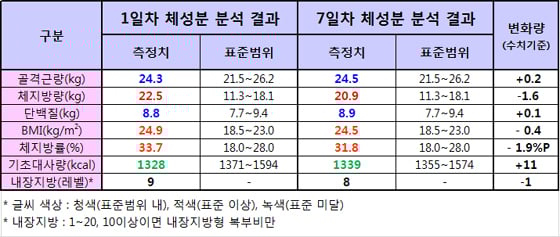 ◇몸은 거짓말을 하지 않았다…체지방 1.6kg 줄어