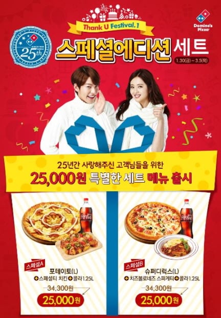 도미노피자는 한국도미노피자 창립 25주년을 기념해 오는 30일 '25주년 스페셜에디션 세트'를 출시한다고 29일 밝혔다.