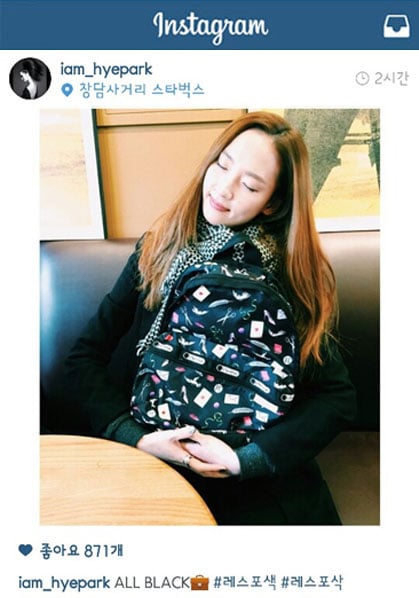 혜박이 선택한 백팩은 가방 전문 브랜드 '레스포삭(LESPORTSAC)' 제품이다.