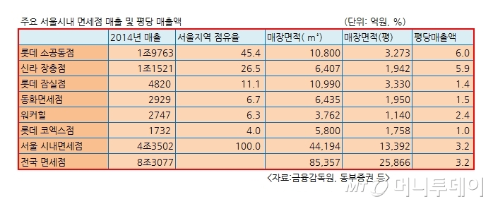 신동주 전 일본 롯데홀딩스 부회장 측 반격으로 점화된 경영권 분쟁이 재연되기 전만 해도 롯데그룹의 면세점 수성은 무난히 이뤄질 것으로 보였다. 면세점 업계에서 롯데의 지위가 확고하기 때문이다. 소공동점(1조9763억원)과 잠실 롯데월드몰점(4820억원)은 지난해 기준으로 2조4583억원의 매출을 올렸다. 서울 시내 전체 면세점 매출(4조3502억원)의 절반이 넘는 56.5%를 차지한다.