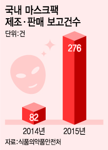 30일 식품의약품안전처에 따르면 올해 마스크팩제품 제조·판매 보고건수는 276건으로 지난해 82건 대비 237% 늘었다. 저렴한 가격으로 피부관리를 할 수 있는 아이템으로 국내 고객은 물론 중국인, 일본인 관광객에도 인기가 높다.