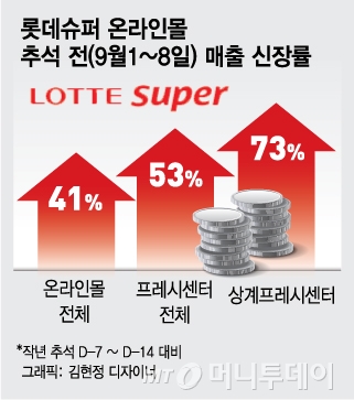 지난 1일부터 8일까지 롯데슈퍼 온라인몰 매출은 지난해 추석 전 기간보다 53% 증가할 정도로 온라인을 통한 명절 장보기는 빠르게 확산되고 있다. 특히 롯데프레시센터는 주문 후 빠르면 2시간 안에 배송돼 소비 수요가 증가하는 시기일수록 이용도가 더 높다. 상계센터의 경우 최근 매출이 72% 급증했다.