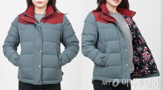 마아라=리버서블 비비 다운 베스트, 겉감은 톡톡하고 안감은 얇고 매끈하다. 겉에는 톤 다운된 베이지가 배색돼 있다. 뒤집었을 때 보다 밝은 느낌으로 입을 수 있지만 차분한 색감 때문에 화사한 느낌은 덜했다.