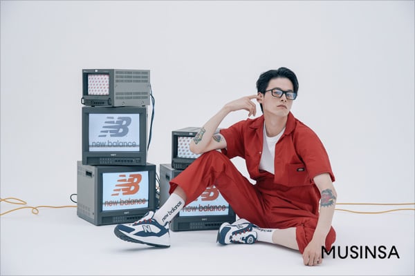 모델 겸 패션디렉터 김원중이 뉴발란스 운동화를 개성 넘치는 스타일로 소화했다.