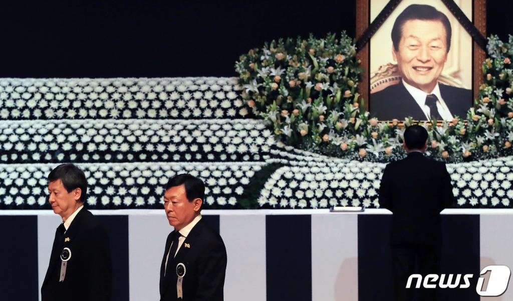 이어 명예장례위원장을 맡은 이홍구 전 국무총리가 추도사를 통해 "고인이 일으킨 사업들은 대한민국 경제를 떠받치는 기둥이 됐다. 우리 시대의 위대한 선각자"라고 말하며 고인을 추도했다.
