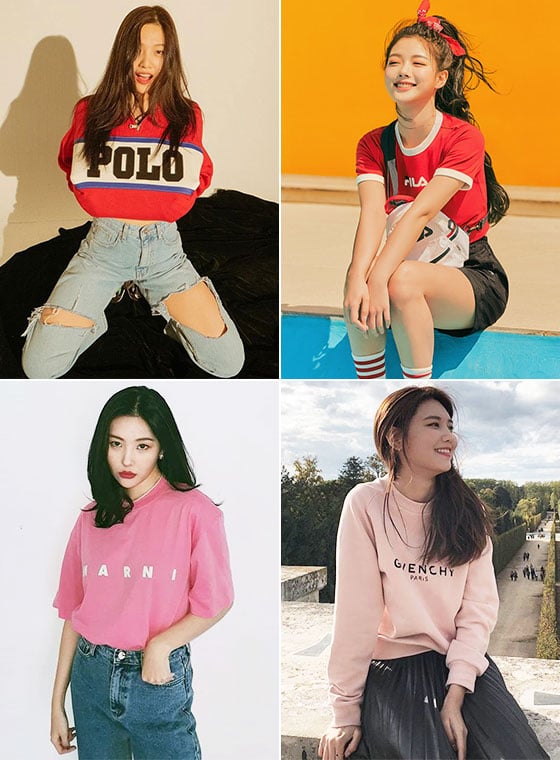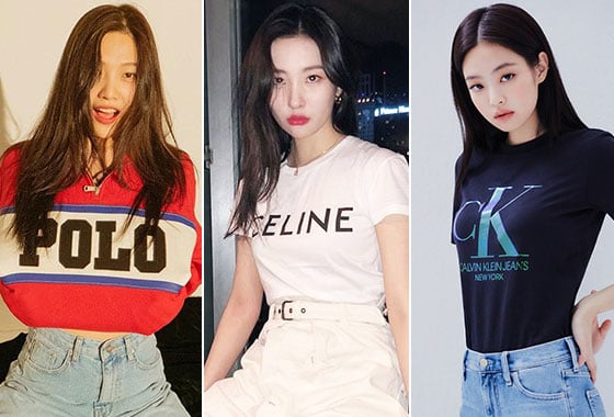 배우 김유정과 블랙핑크 제니는 박시한 핏의 로고 티셔츠 한 장으로 스타일을 완성하기도 했다.