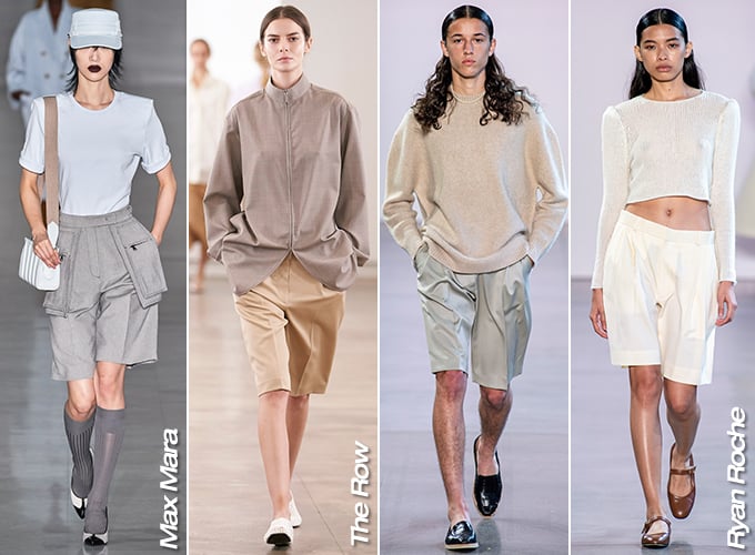 '지방시'는 이너 없이 매니시한 재킷을 걸쳐 시크한 룩을 연출했으며, '토즈' 런웨이에 오른 모델 최소라는 심플한 라운드 티셔츠와 함께 버뮤다 팬츠를 입어 세련미를 뽐냈다.