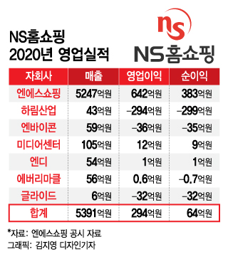 하지만 NS홈쇼핑의 연결기준 영업이익을 보면 상황이 다르다. NS홈쇼핑의 지난해 연결기준 영업이익은 294억원으로 전년 대비 2.2% 상승하는 데 그쳤다. 본업에서 성공을 거뒀음에도 자회사의 부진으로 영업이익이 제자리걸음 한 셈이다.