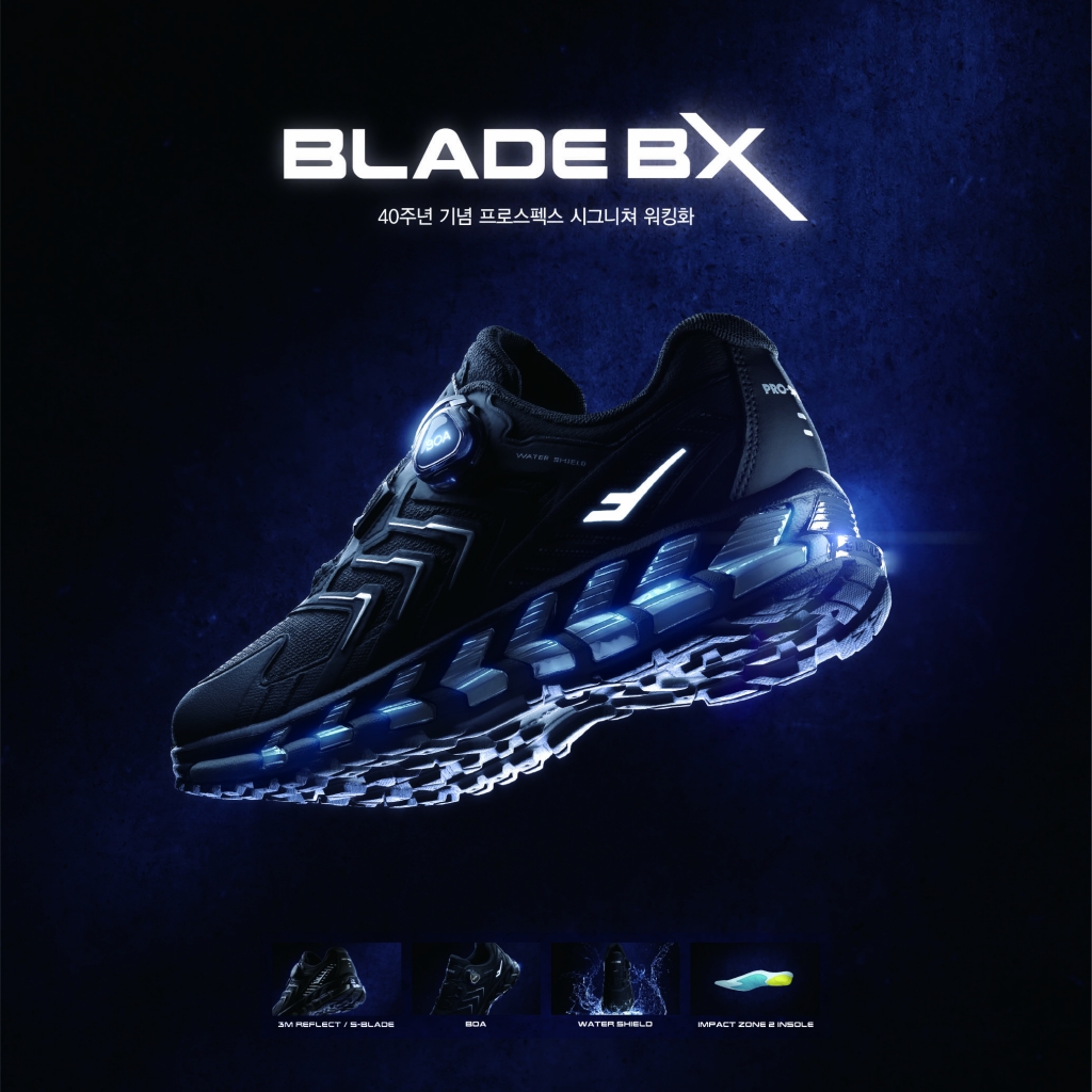 토종 스포츠 브랜드 프로스펙스가 브랜드 론칭 40주년을 기념해 워킹화 명가의 명성을 이어갈 신제품 ‘블레이드 BX’를 출시했다.